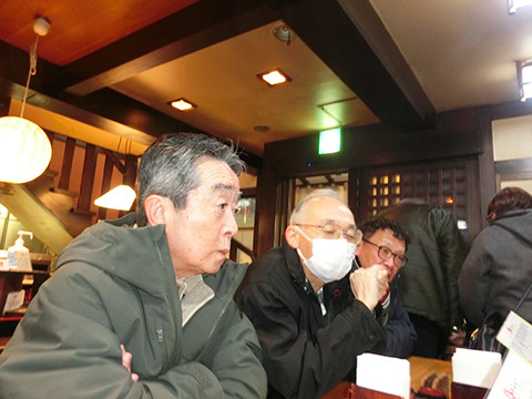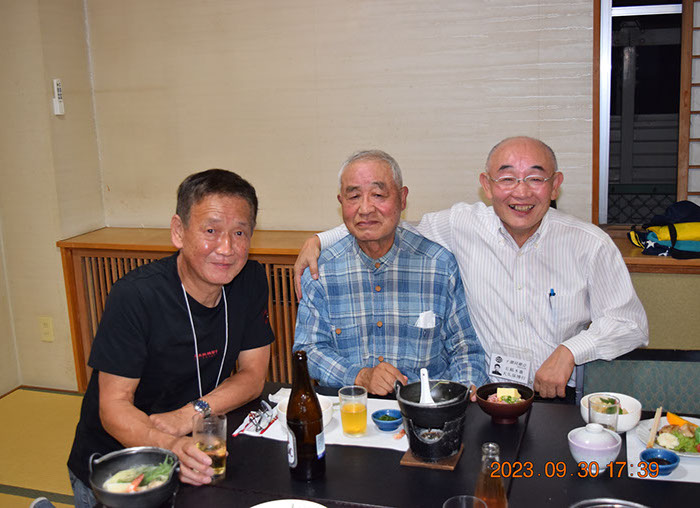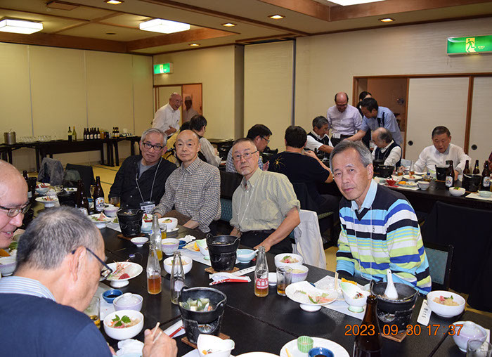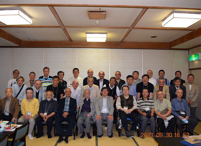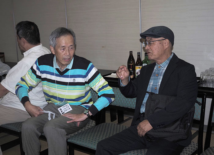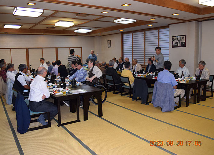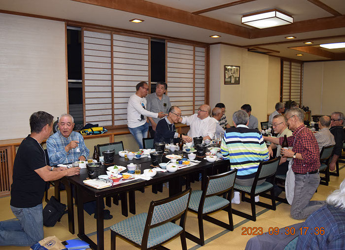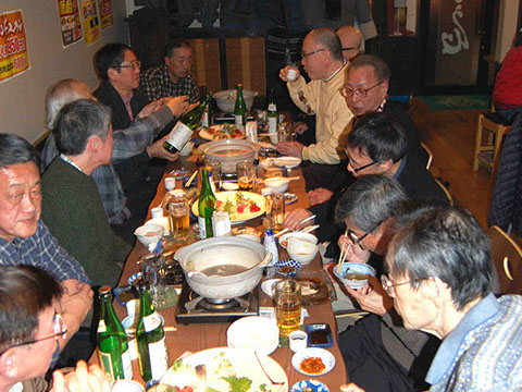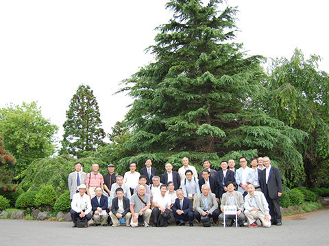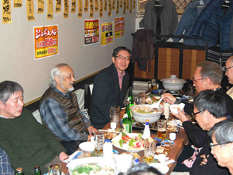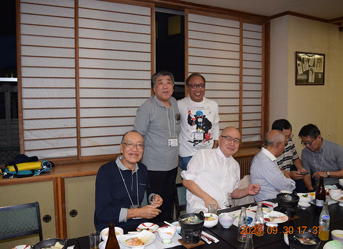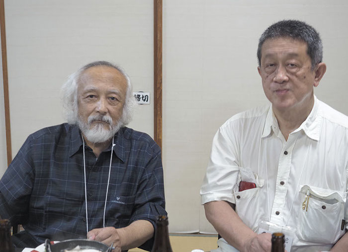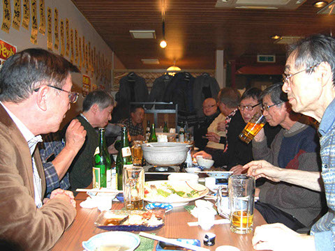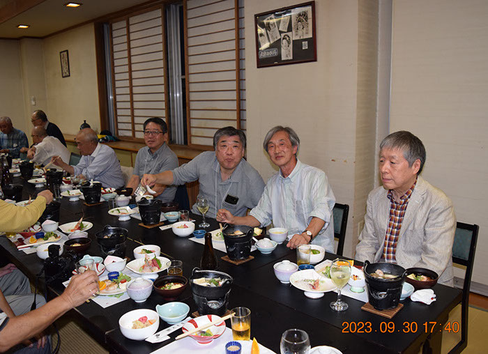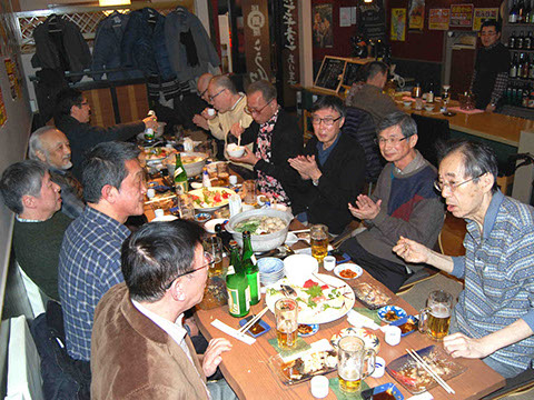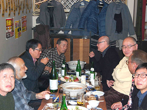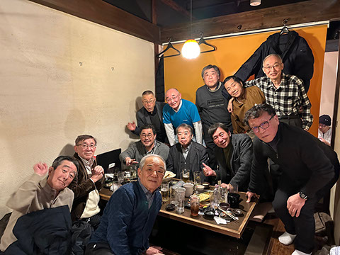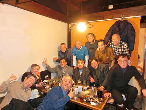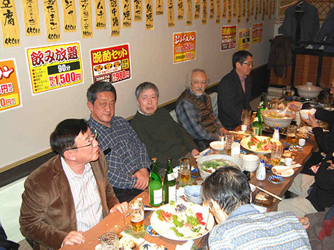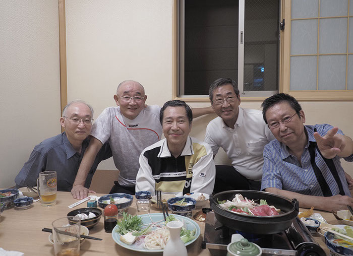 左側手前より沢田、上野博康、塙、簗詰、澤、白金、右手手前より土谷、