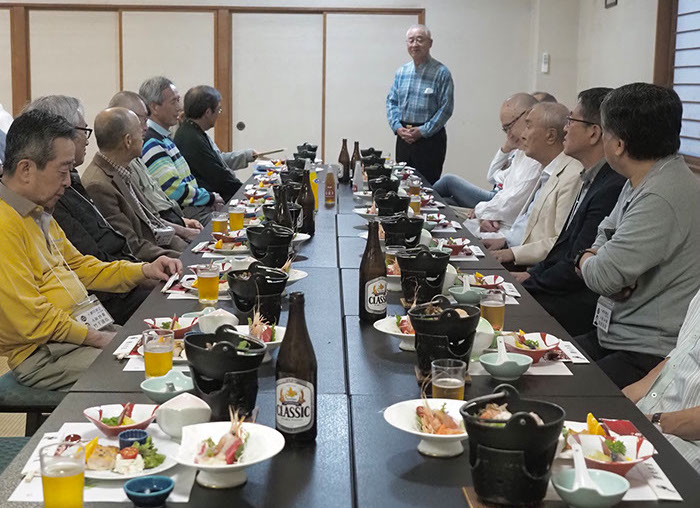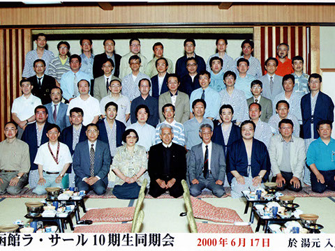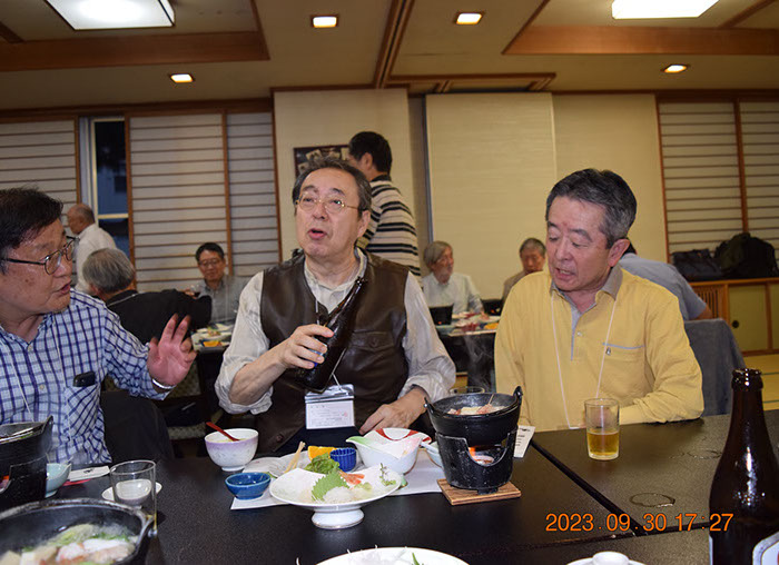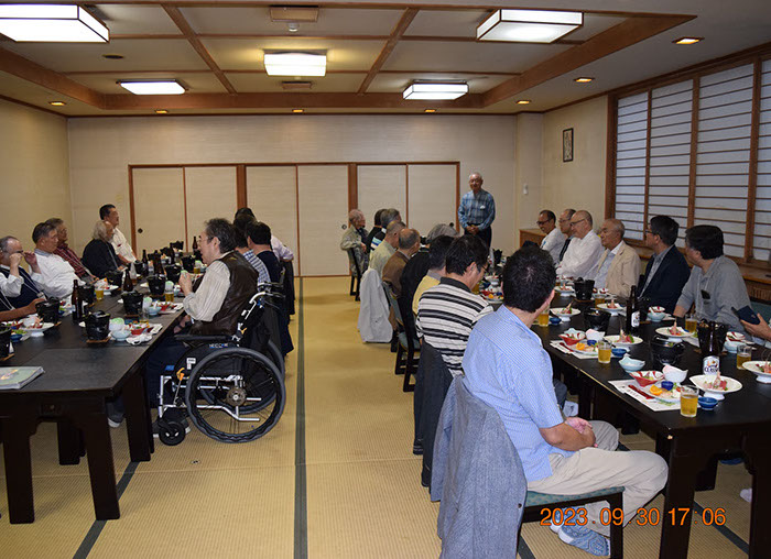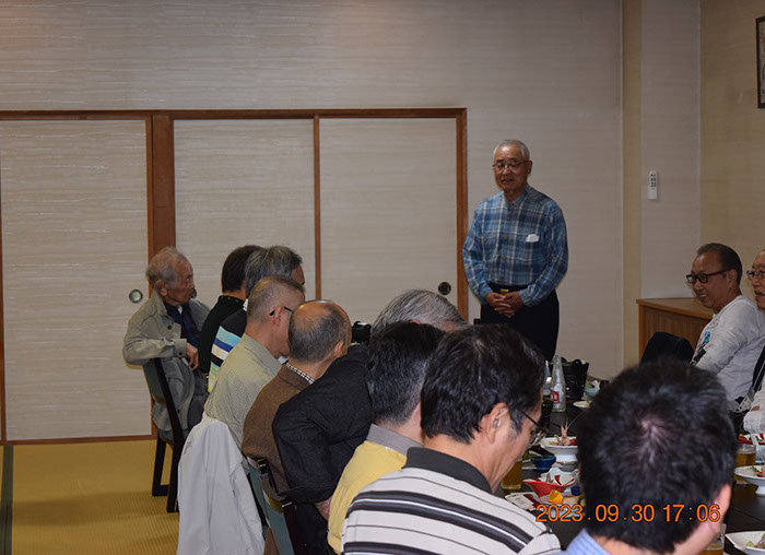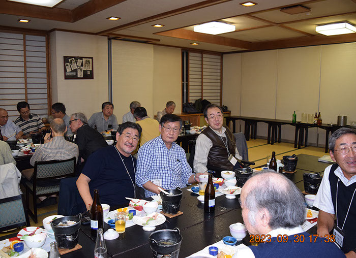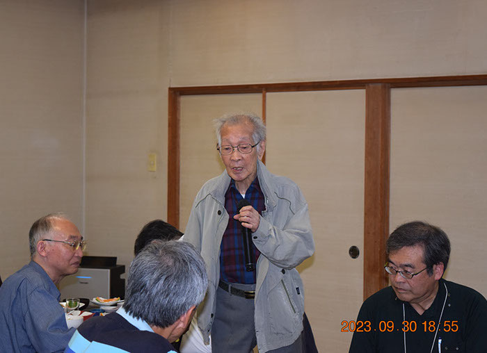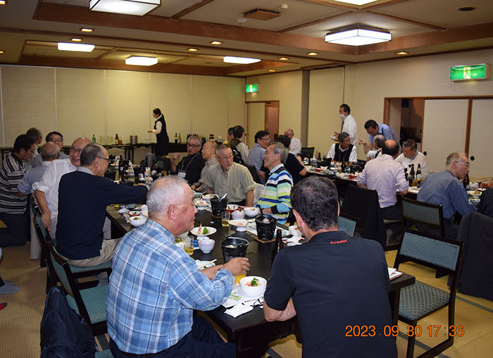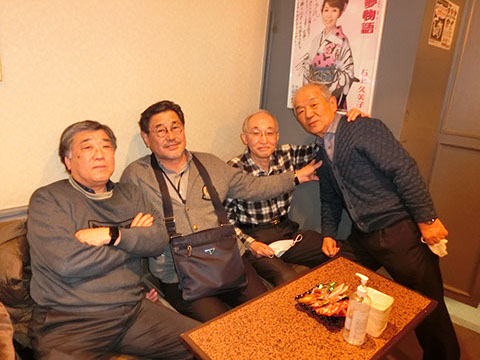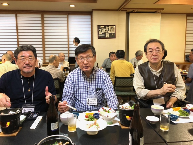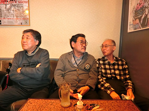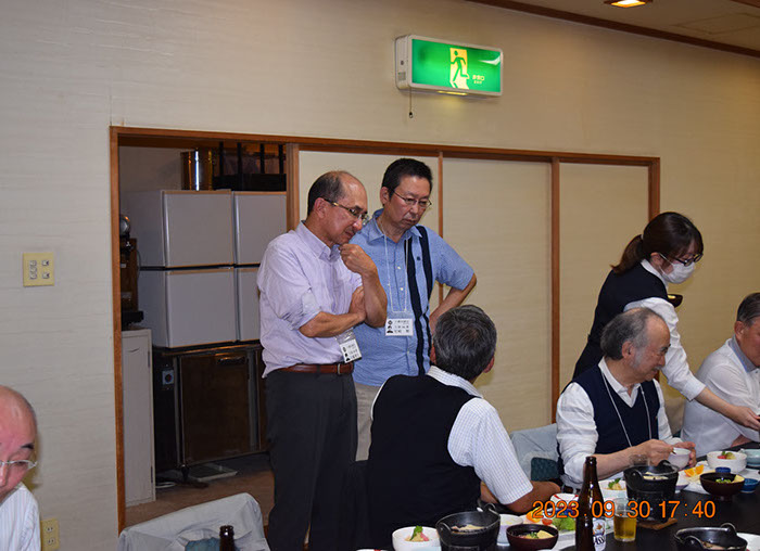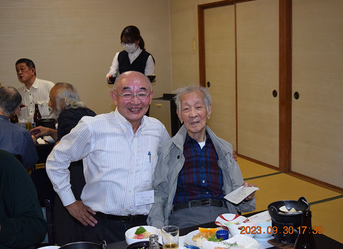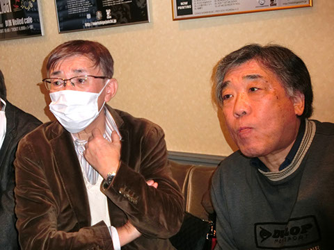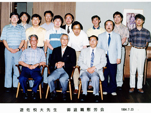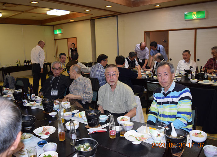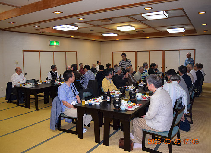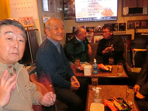 左側手前より沢田、上野博康、塙、簗詰、澤、白金、右手手前より土谷、