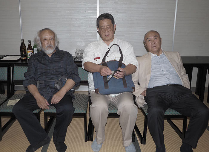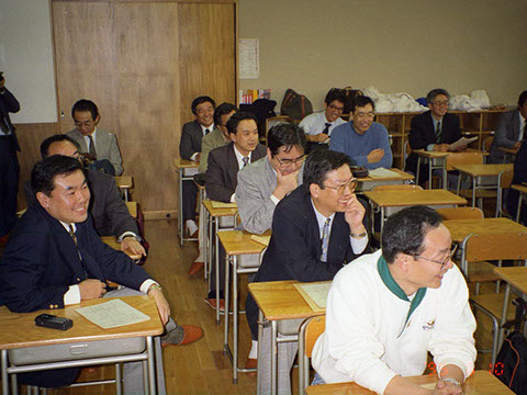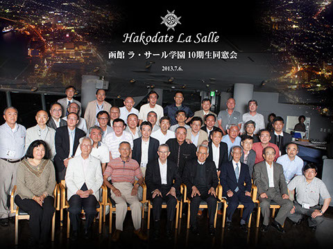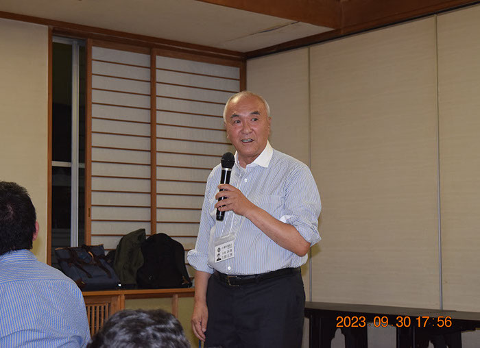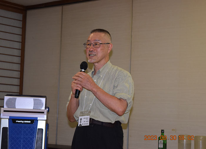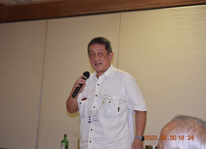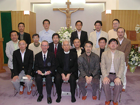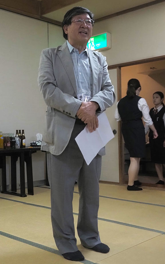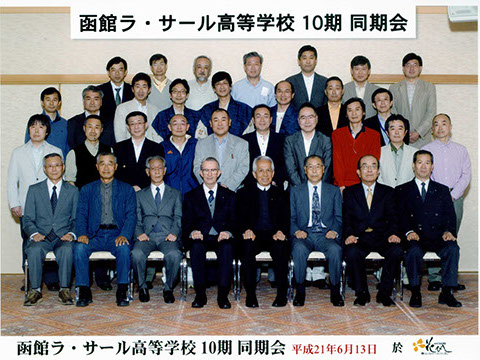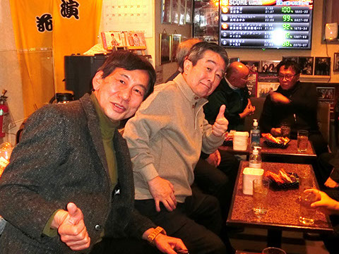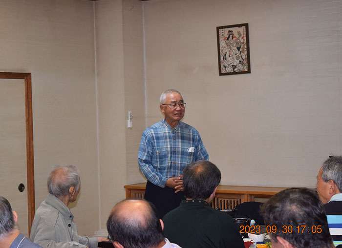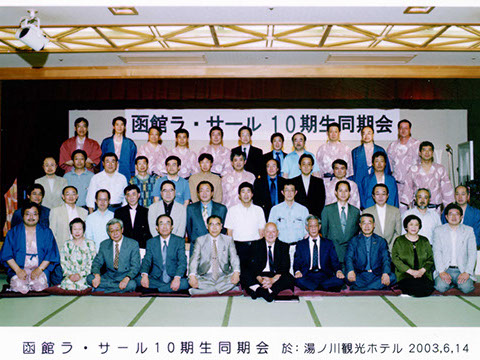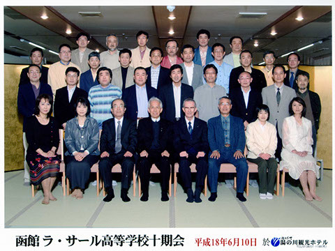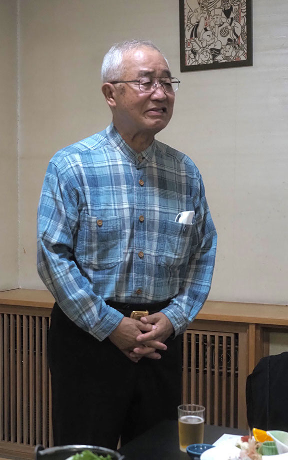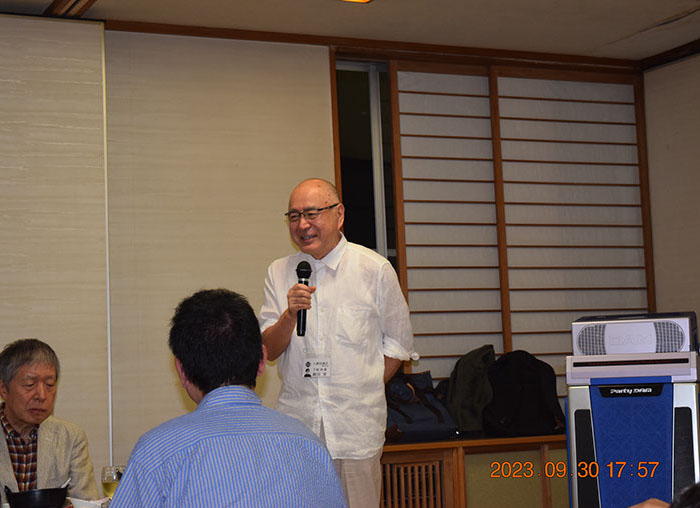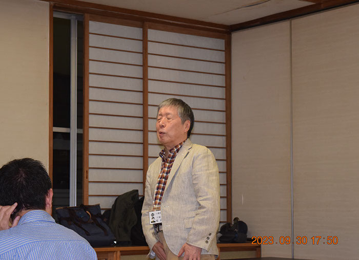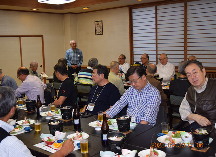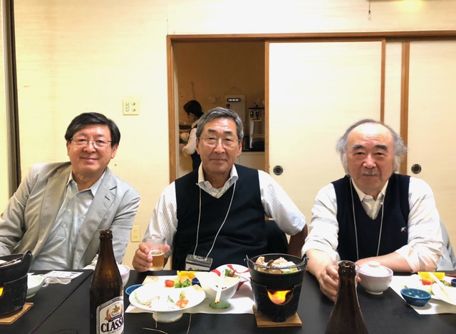 左側手前より沢田、上野博康、塙、簗詰、澤、白金、右手手前より土谷、