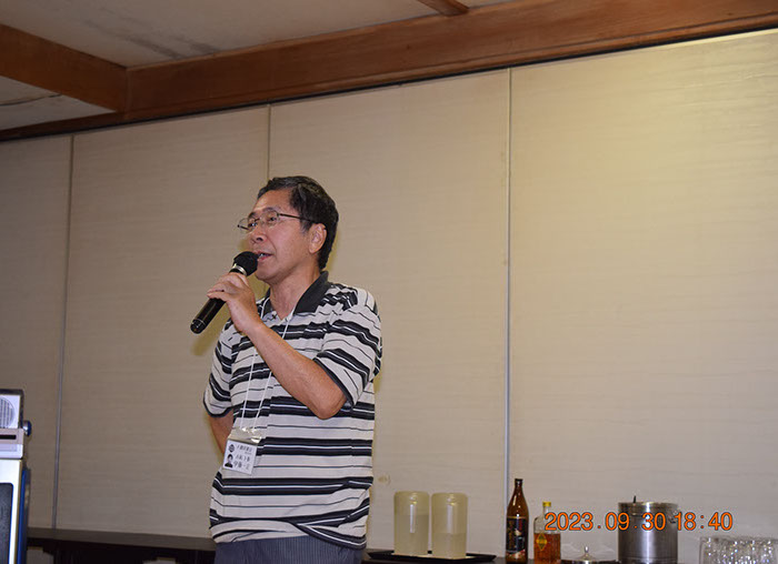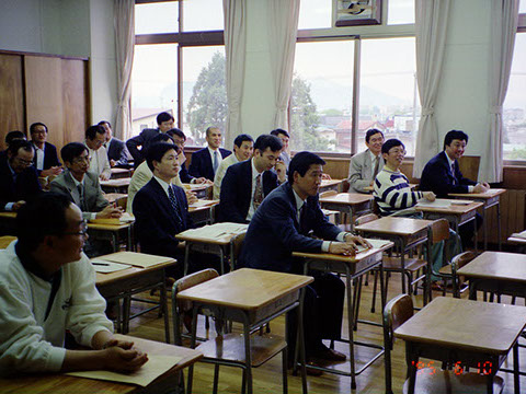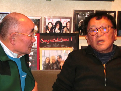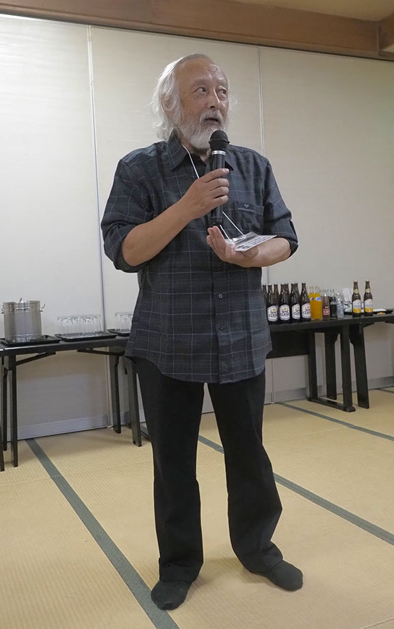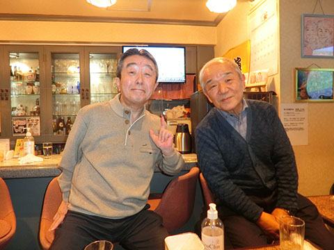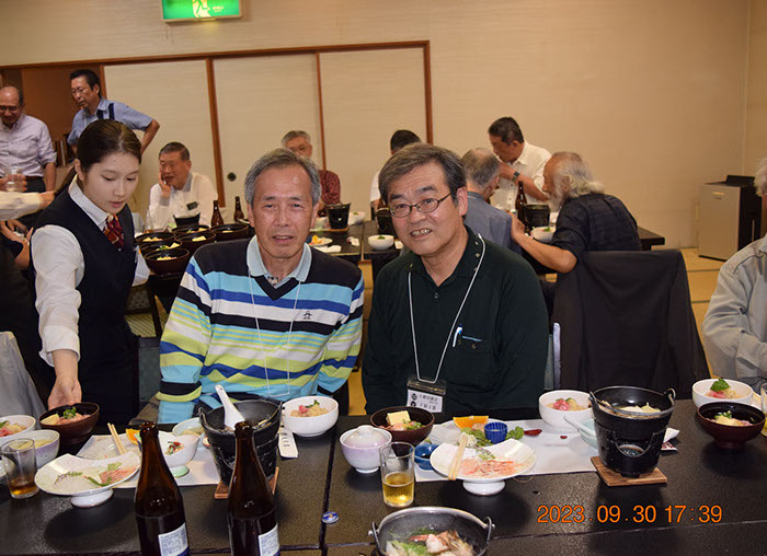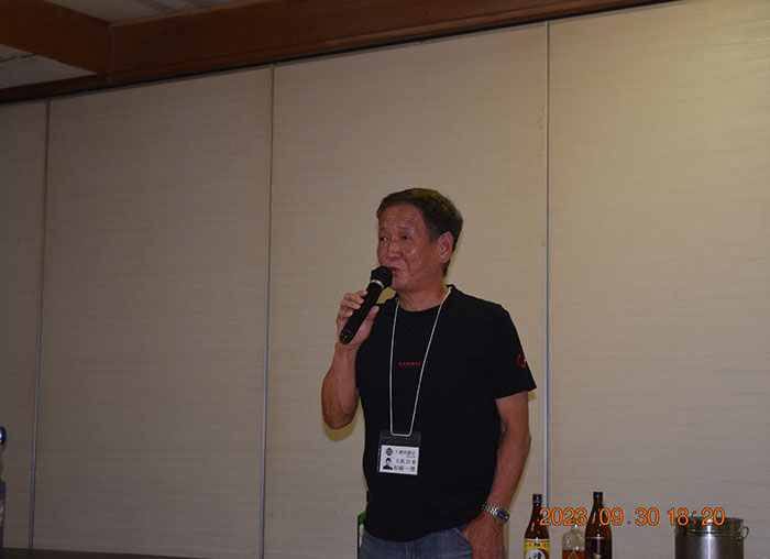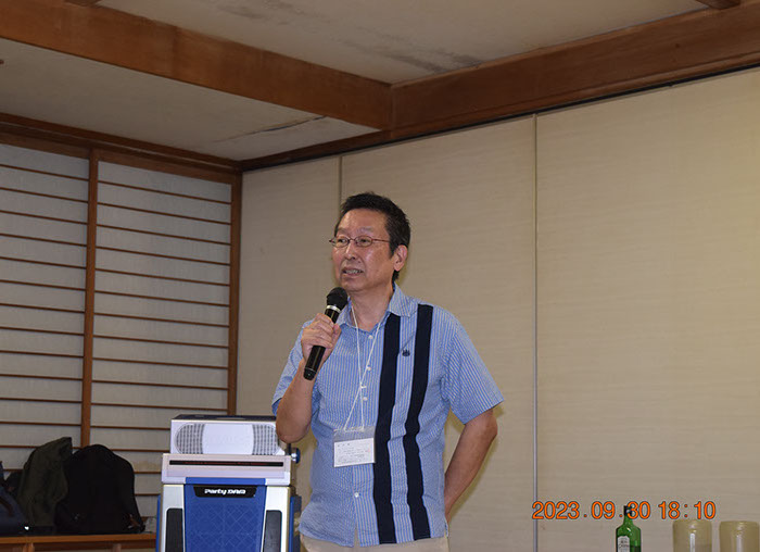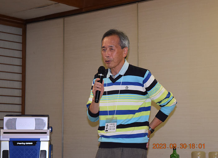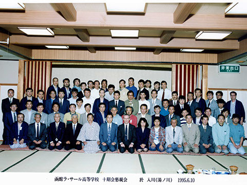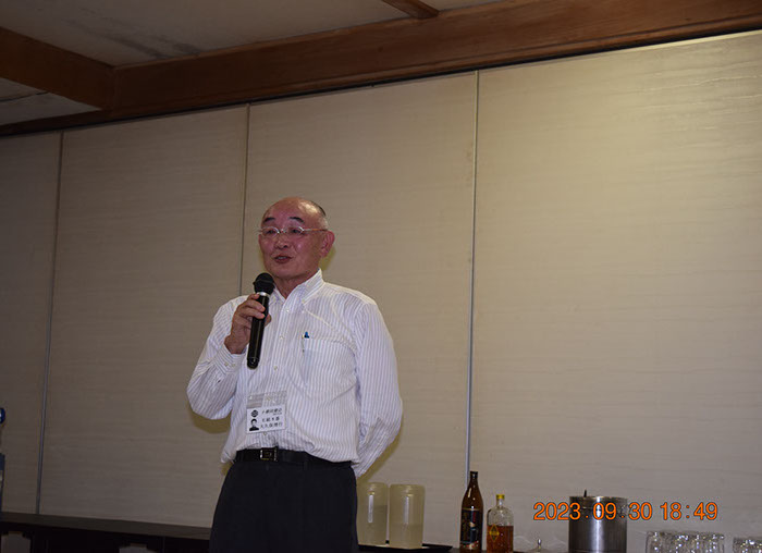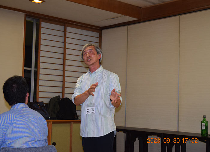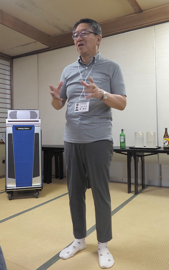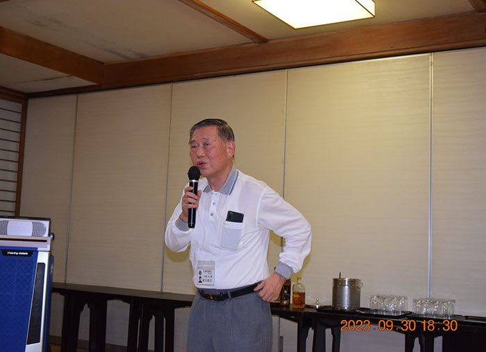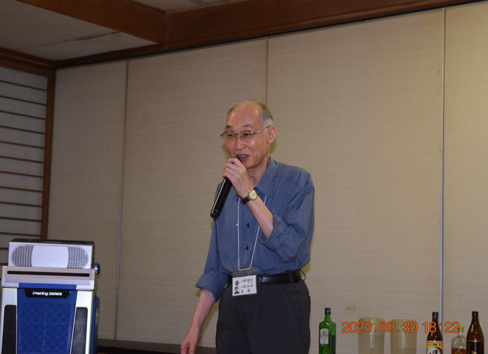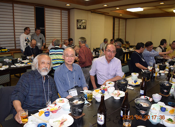 左側手前より沢田、上野博康、塙、簗詰、澤、白金、右手手前より土谷、