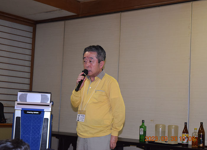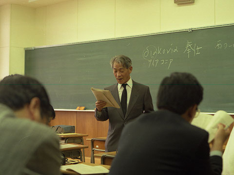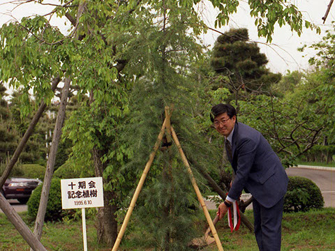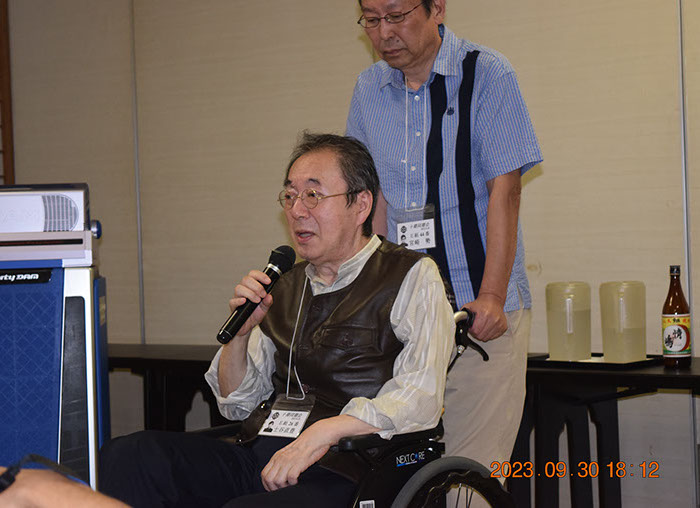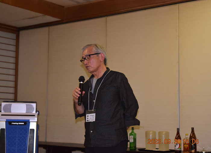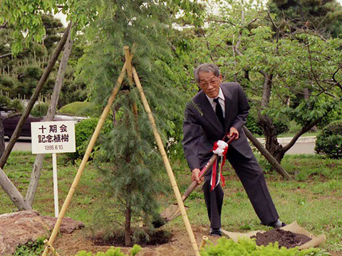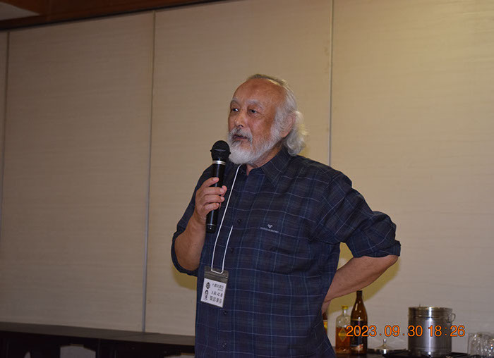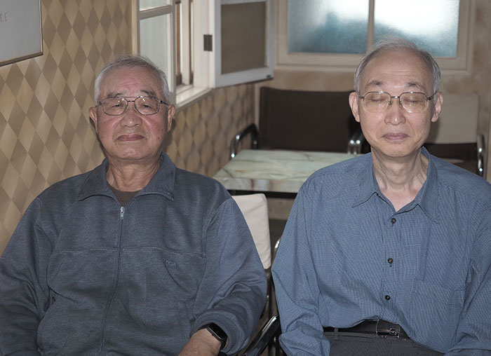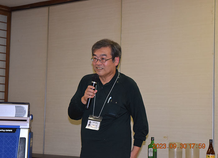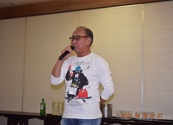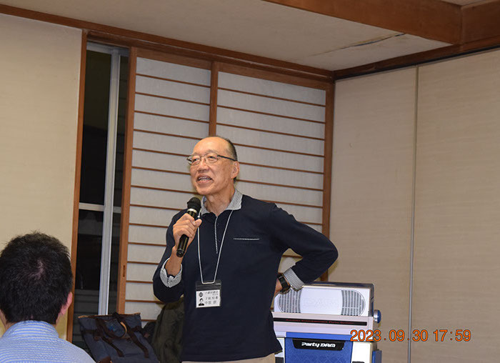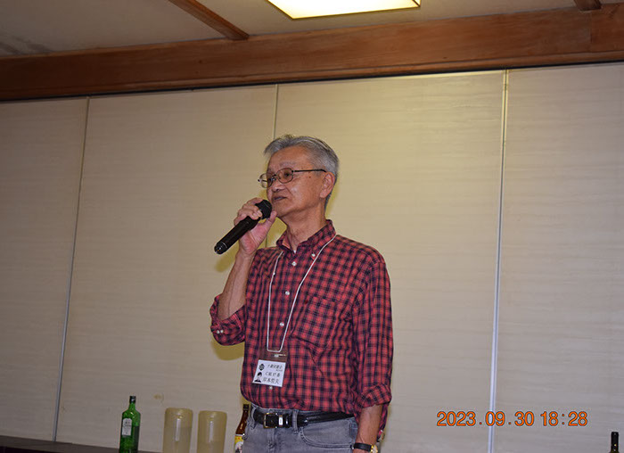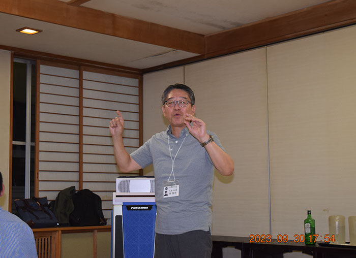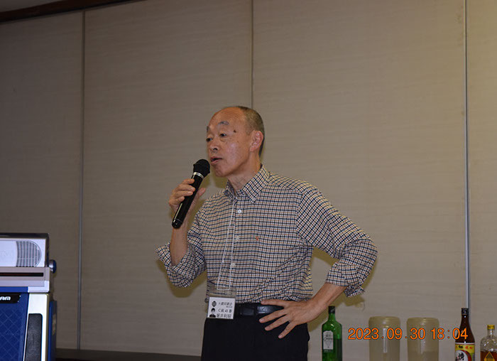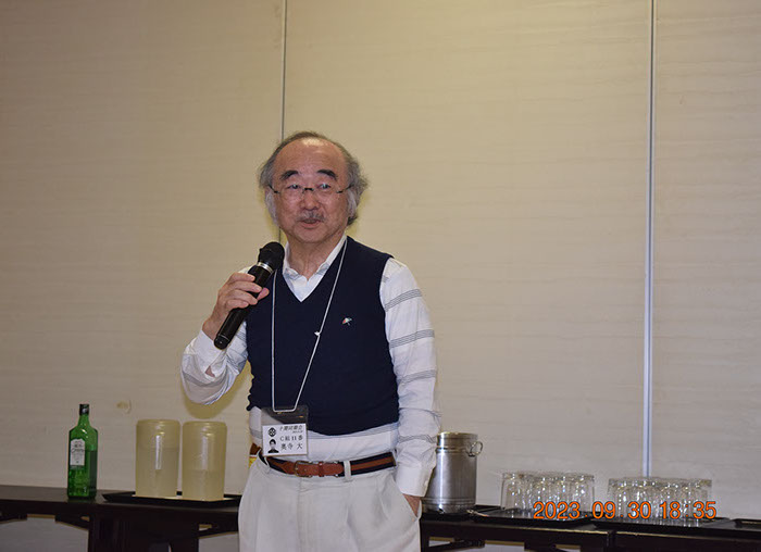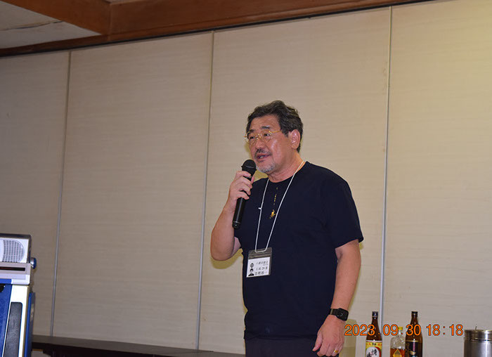 左側手前より沢田、上野博康、塙、簗詰、澤、白金、右手手前より土谷、