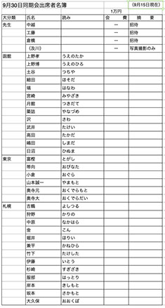 6月同期会の出席状況がだいたいまとまる。(上記参照)